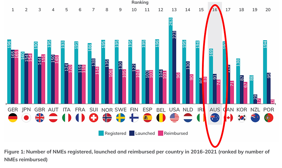 Despite more than 20 years of savings being delivered to the PBS, Australia still hasn't improved its ranking in international comparisons of patients' access to new medicines. Australians still wait too long for new therapies compared to their counterparts in other countries, and we often don't get the range of innovative medicines that people in the US, Europe, Japan and other peers get access to.